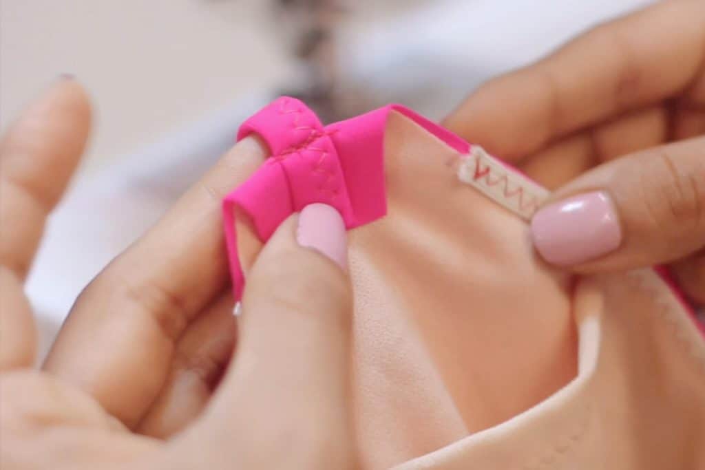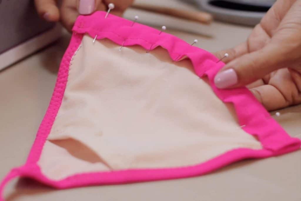 Here are the five essential steps to sew a bikini top with cute petal-like fabric details and extra support. Check out the full tutorial below for all the details and sewing tips!