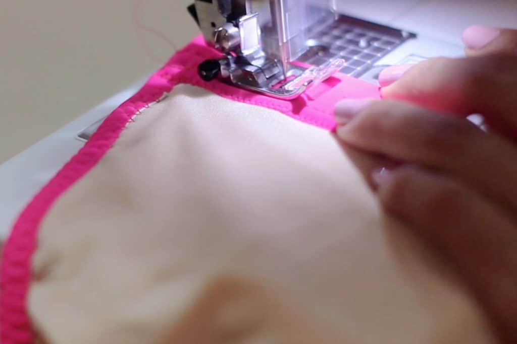 Sew a straight stitch 1/4” from the bottom edge to hold all the pieces in place (in the video it’s shown after sewing the elastic, but I also like to do it before that).