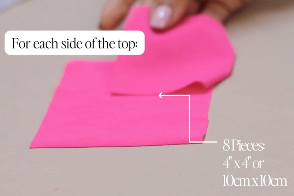Lastly, I cut a mix of small and big squares for the petals. 🌸 Below there’s an image to help you double-check all your pieces before you start sewing.