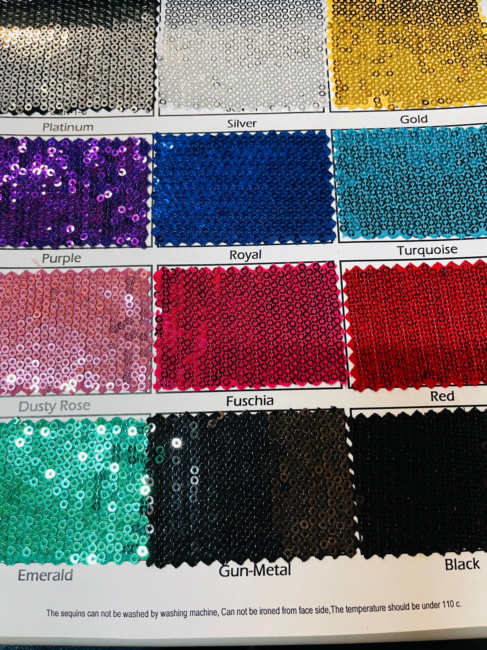 Here are two types of stretch sequins I’ve used for competition suits — and there are sooo many gorgeous colors to choose from. If you’re anything like me, you’re gonna want them all! 🫣